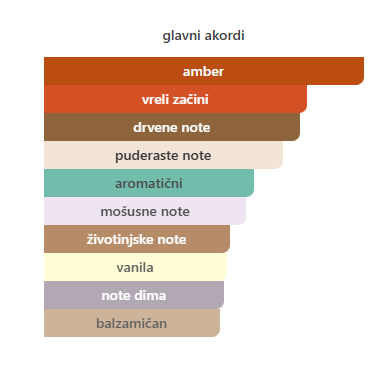 Bazne note: Amber, Tamjan, Vanilija, Cibetka, Mošus, Vetiver
