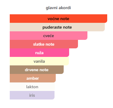 - Srednje: Ruža, Iris, Heliotrop, Jasmin