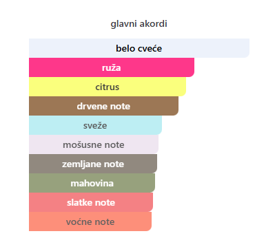 - Srednje: Jasmin, Ruža, Pačuli, Cvet narandže