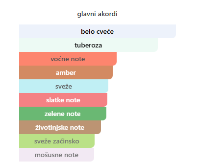 - Srednje: Tuberoza, Cvet narandže, Kineski čaj