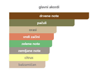 Miris za žene. Otvara se svežim bergamotom, prelazi u srce sa kremastom notom pistaća, dok se završava toplom bazom od pačulija.