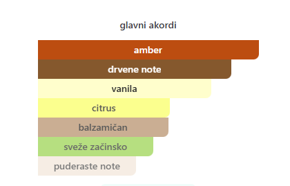 Otvara se živahnim akordom grejpfruta, koji unosi citrusnu svežinu i energiju. Srce parfema otkriva elegantnu strukturu sa drvenim notama i olibanumom, pružajući aromatičnu dubinu i mineralnu toplinu. Baza se razvija u raskošnu kombinaciju vanile i Amber Xtreme akorda, dajući dugotrajan, topao i luksuzan završetak.