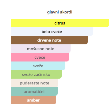 - Bazne note: Mošus, Ambroksan, Drvene note, Sandalovo drvo